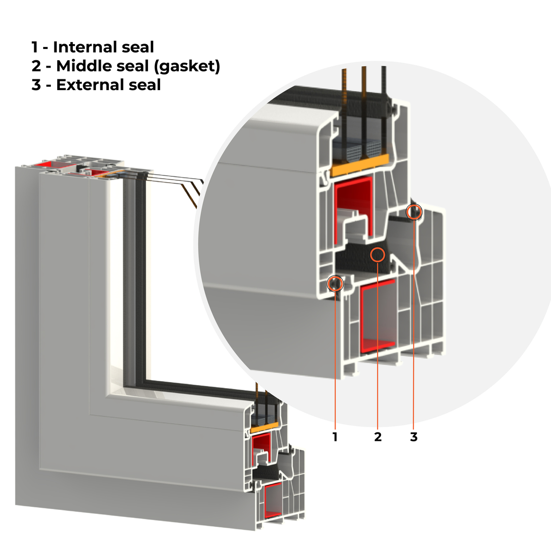 ملف تعريف PVC يأتي مع 3 حشوات. تساهم الحشوة الثالثة في عزل فائق.